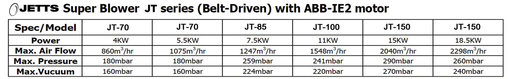 JETTS Super Blower มีให้เลือกหลายขนาด ตั้งแต่ขนาด 4KW จนถึง 18.5KW เพื่อให้เหมาะกับงานหลากหลายรูปแบบ